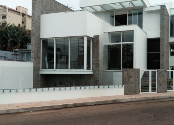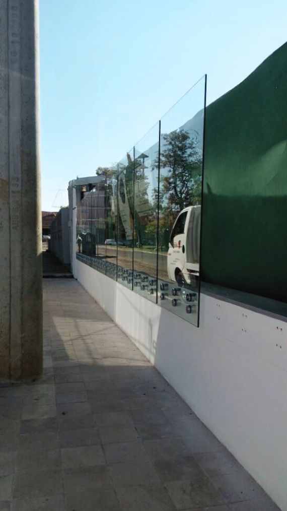 Com um aspecto moderno, esse sistema de fixação é composto com prologadores de 5cm de diâmetro que afastam os vidros 5cm da parede.